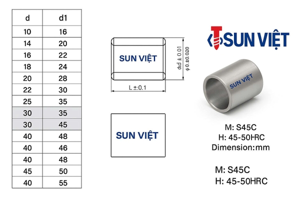 Sau khi nhiệt luyện, bạc đạt độ cứng 40–50 HRC, chịu được ma sát và tải trọng trong quá trình đóng – mở khuôn.