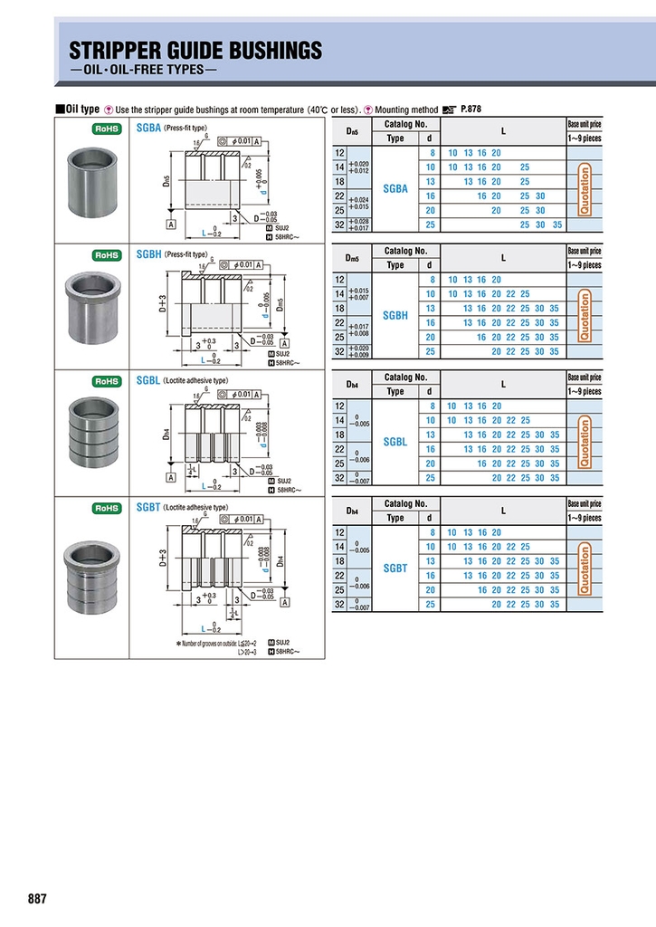 Bạc dẫn hướng khuôn dập SGBL là lựa chọn tối ưu cho các hệ khuôn yêu cầu thiết kế gọn, bề mặt phẳng và độ chính xác cao. Với chất lượng gia công tốt và khả năng chống mài mòn cao, sản phẩm giúp nâng cao hiệu suất và tuổi thọ khuôn.