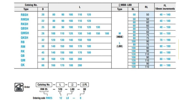● Quy cách thiết kế lựa chọn: RK22 (đường kính trục D=22mm, chiều dài trục L=80,90,100,110,120)