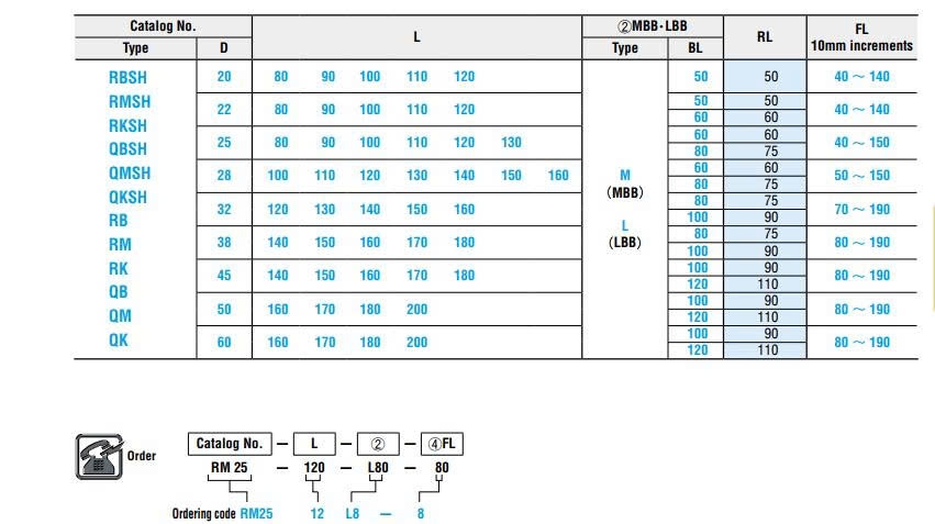 Chiều dài trục dẫn hướng: L=140,150,160,170,180 mm