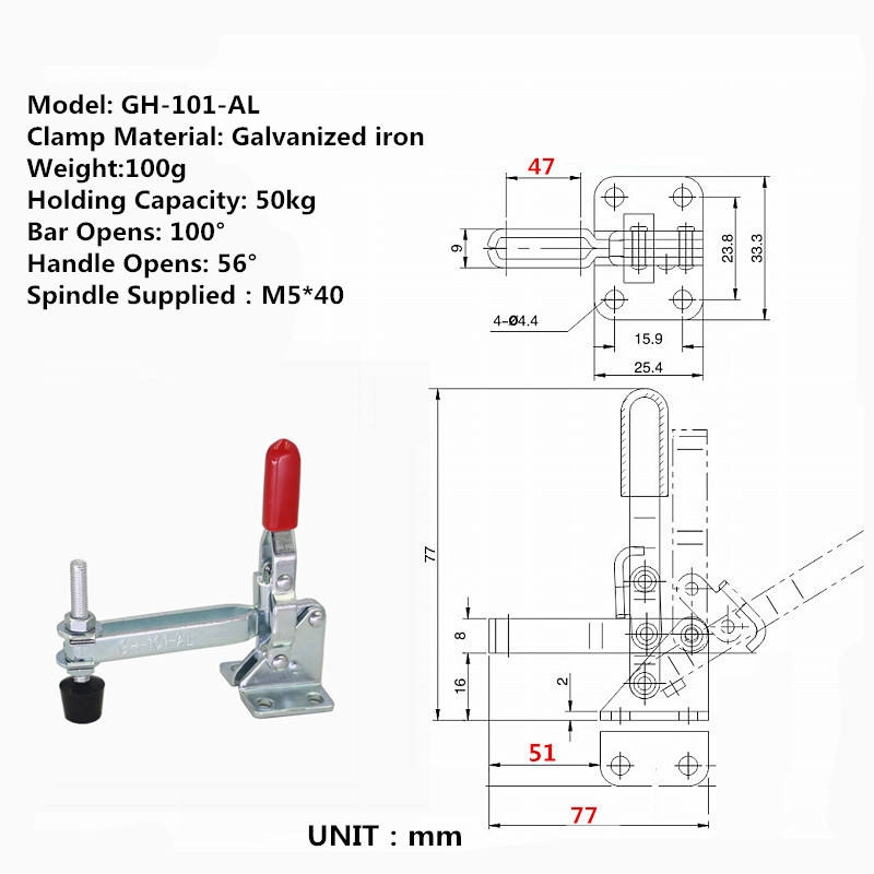 - Kẹp định vị GH-101AL Vertical Toggle clamp là loại kẹp định vị đứng