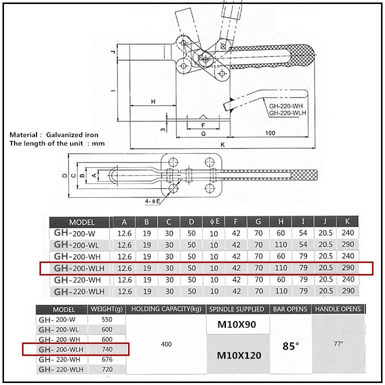 - Kẹp định vị GH-200-WLH được sử dụng rộng rãi trong các linh kiện điện tử, thông tin thiết bị sản xuất, ô tô, xe máy, xe đạp và tấm kim loại, sắt, hay nhóm ống nội thất khác.