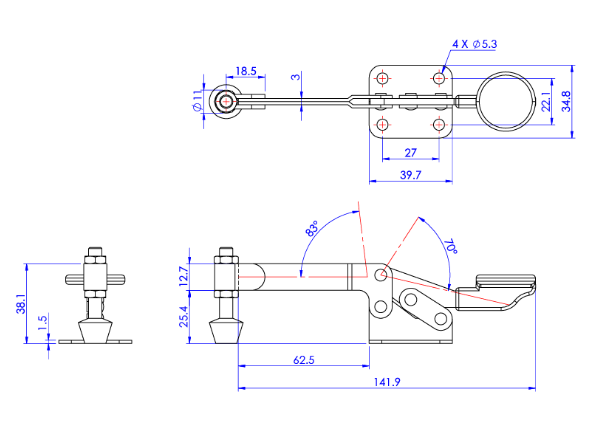 Cam kẹp ngang chính là một cơ cấu gá kẹp nó bao gồm một tay cầm để điều khiển kẹp, một thanh kẹp giữ để kẹp lấy phôi kẹp, và một hệ thống liên kết các bản lề và đòn bẩy để áp đặt lực tác dụng vào