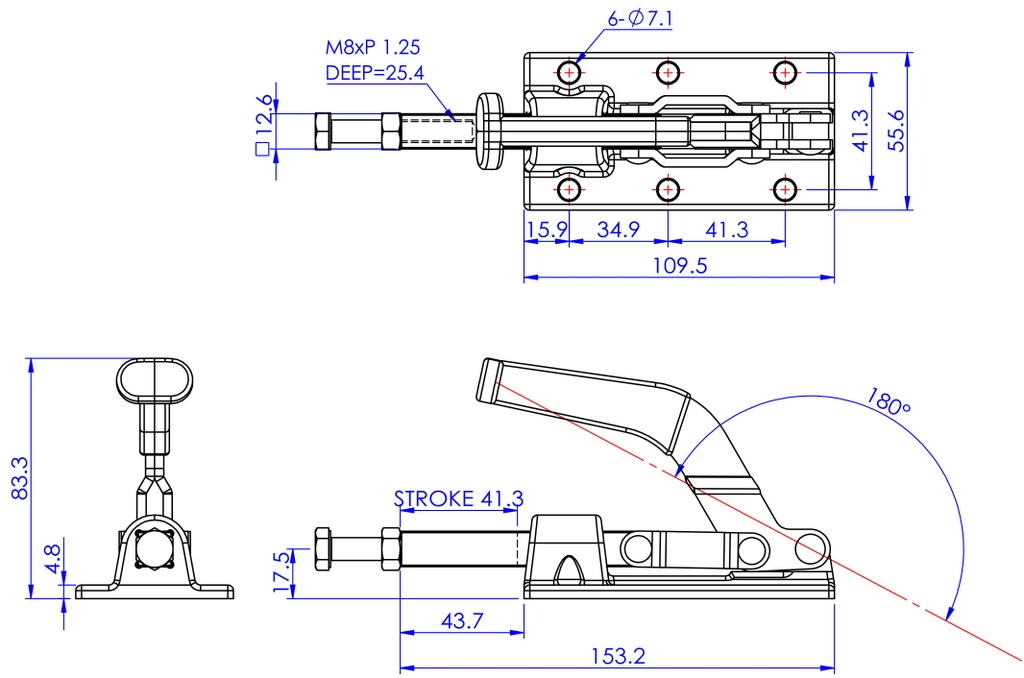Kẹp định vị GH-30608-M là loại chốt đẩy ngang và là loại kẹp có thanh kẹp ( pittong ) di chuyển ngang dọc trục, và đẩy hoặc kéo tay cầm để đóng mở kẹp.