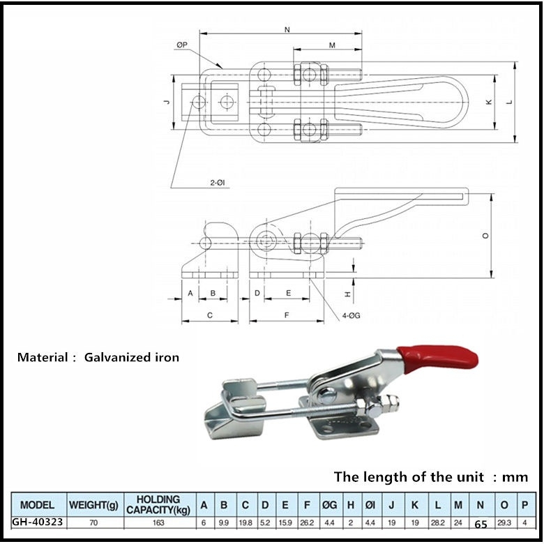 Cam kẹp GH-40323 Latch Toggle clamp là loại khóa kẹp chốt được sử dụng trong công nghiệp để gá kẹp nhanh sản phẩm, kẹp kiểu khóa chốt nghĩa là ở trạng thái đóng thì một đầu dòng với móc khóa, để khóa chặt sản phẩm.