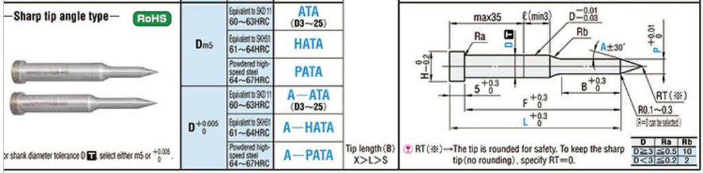 Bảng thông số chày đột bậc ATA