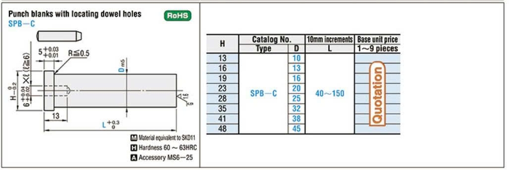 Chày đột SPB16 (đường kính thân 16mm) vật liệu thép SKD11 là dòng phôi tiêu chuẩn cao cấp, được các xưởng cơ khí chính xác ưu tiên lựa chọn để mài phủ và chế tạo thành các dòng chày đột chuyên dụng.
