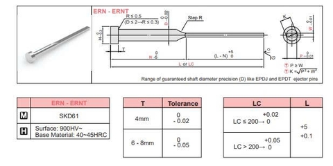 Chất liệu: Thép công cụ SKD61, có độ cứng cao (khoảng 50−54HRC)![]()