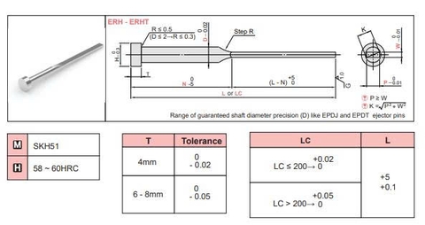 Chất liệu: Thép công cụ SKH51, có độ cứng cao (khoảng 50−54HRC)