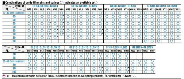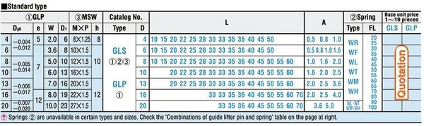 GLS-GLP: 02 loại chốt tiêu chuẩn với các thông số đường kính, chiều dài chuẩn misumi