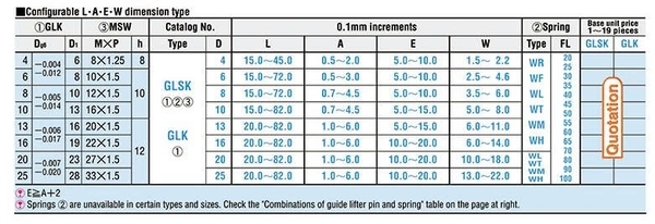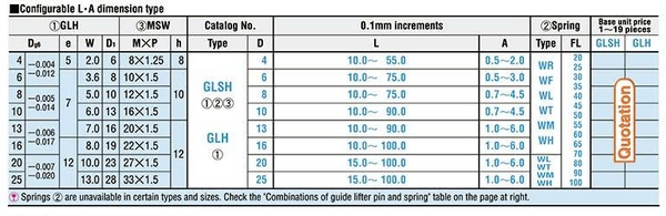 GLH-GLSH: kiểu chốt có thể thay đổi kích thước chiều dài L-A phù hợp từng loại khuôn