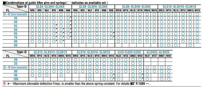 Các thông số của chốt nâng dẫn hướng GLS: