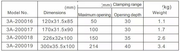 Dãy model gồm 4 kích thước khác nhau, phù hợp cho mọi loại chi tiết từ nhỏ đến lớn, thao tác dễ dàng, độ bền cao và ổn định lâu dài.