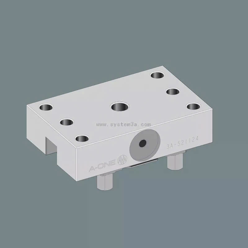 Holder điện cực bằng thép A-ONE 3A-521124 được thiết kế cho hệ EDM/CNC, có sẵn khe lắp code carrier, giúp tích hợp vào hệ thống nhận dạng điện cực/phôi bằng chip 3A.