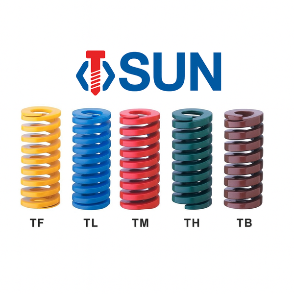 | Màu Đỏ | Tải trọng trung bình (Medium Load) | Sợi lò xo dày hơn. Độ nén tối ưu khoảng 25-30%. | Dùng cho các bộ khuôn dập hoặc khuôn nhựa có hệ thống linh kiện nặng. |