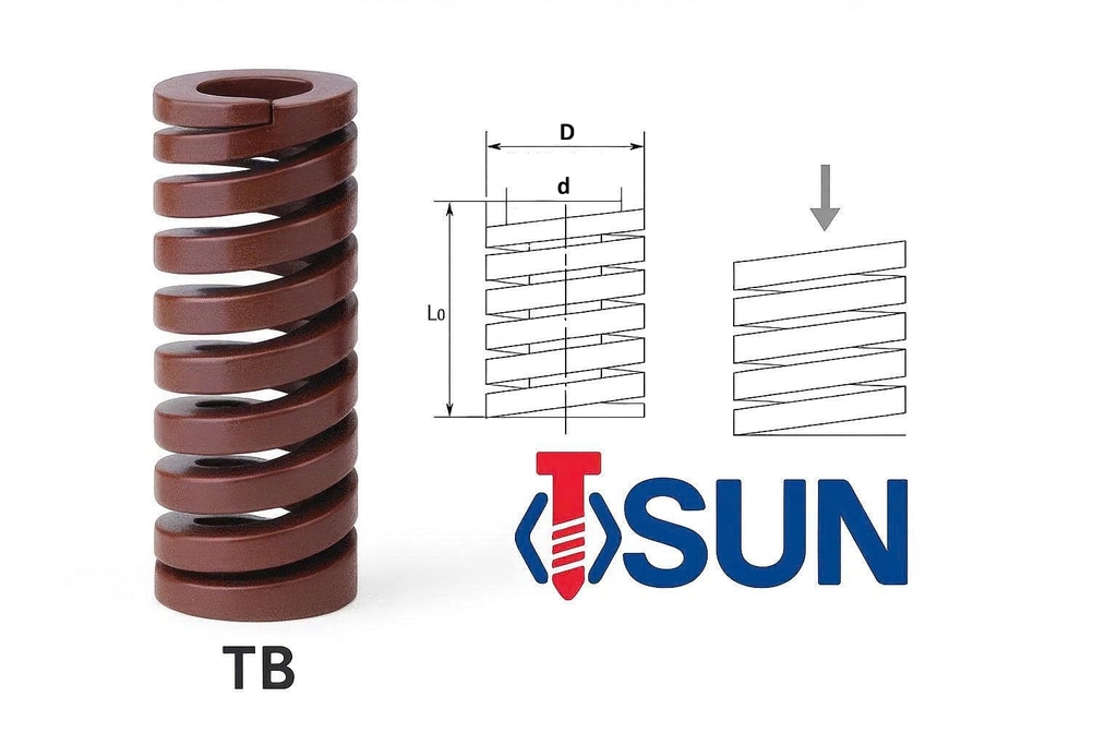 Lò xo nâu TB hay DB (brown) là loại tải siêu nặng (Super Heavy Load), có khả năng chịu lực nén rất lớn, được dùng trong những bộ khuôn yêu cầu lực hồi mạnh, hoạt động liên tục và chịu tải cao.