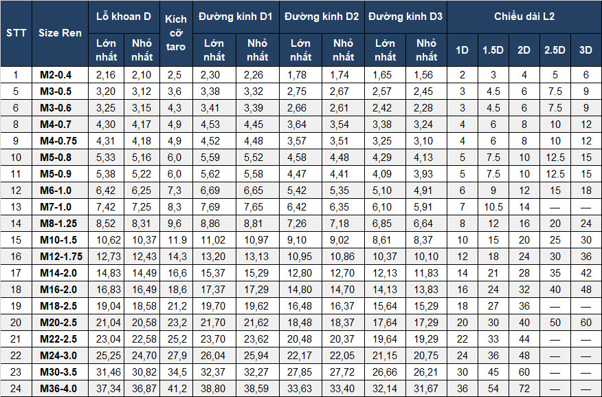 Lỗ taro: Taro ren cấy tiêu chuẩn M4