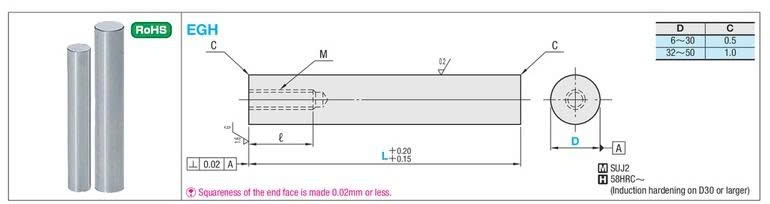 Trục dẫn hướng EGH40 là dòng chốt dẫn hướng trụ thẳng tiêu chuẩn, được gia công đặc biệt với các rãnh dẫn dầu (hình xoắn ốc hoặc hình lưới) trên bề mặt thân chốt.