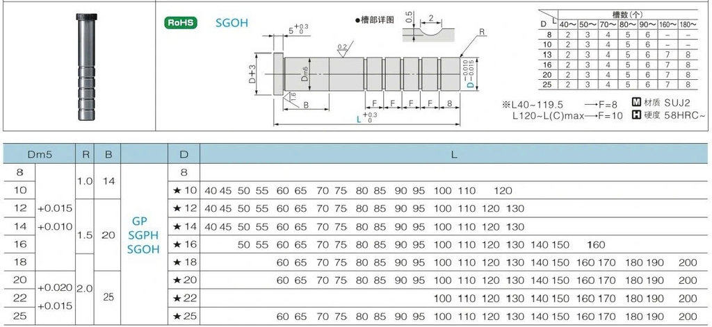 Thông số kỹ thuật chi tiết Trục dẫn hướng SGOH