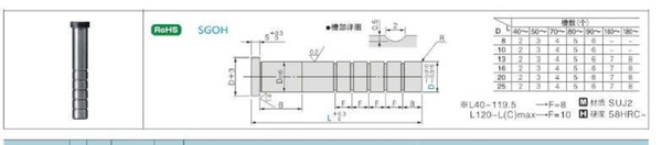 SGOH25-140 là trục dẫn hướng có rãnh dầu với đường kính Ø25 mm, chiều dài 140 mm, được sử dụng phổ biến trong khuôn ép nhựa, khuôn dập và khuôn cơ khí chính xác. Thiết kế rãnh dầu dọc thân trục giúp giữ dầu bôi trơn ổn định, giảm ma sát, hạn chế mài mòn giữa trục và bạc dẫn hướng, từ đó nâng cao độ chính xác khi khuôn đóng – mở.