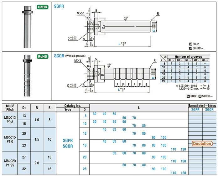 Bảng thông số kỹ thuật Trục dẫn hướng SGOR